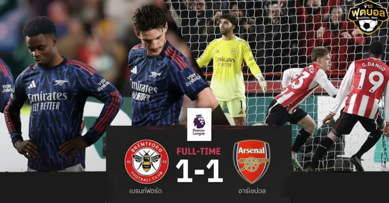 ผลบอล เบรนท์ฟอร์ด 1-1 อาร์เซน่อล:ปืนสะดุดเจ๊า ทิ้งแมนซิตี้แค่ 4 แต้ม