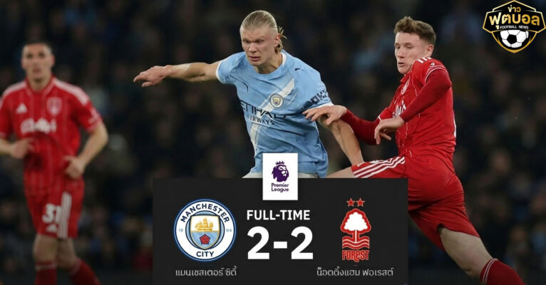 ผลบอล แมนซิตี้ 2-2 ฟอเรสต์! เรือนำ 2 หนโดนทวง-ตามจ่าฝูง 7 แต้ม